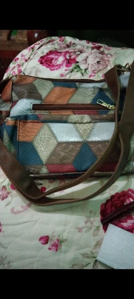 Det färgstarka mosaikmönstret och det mjuka veganska lädret ger varje look en unik touch.
